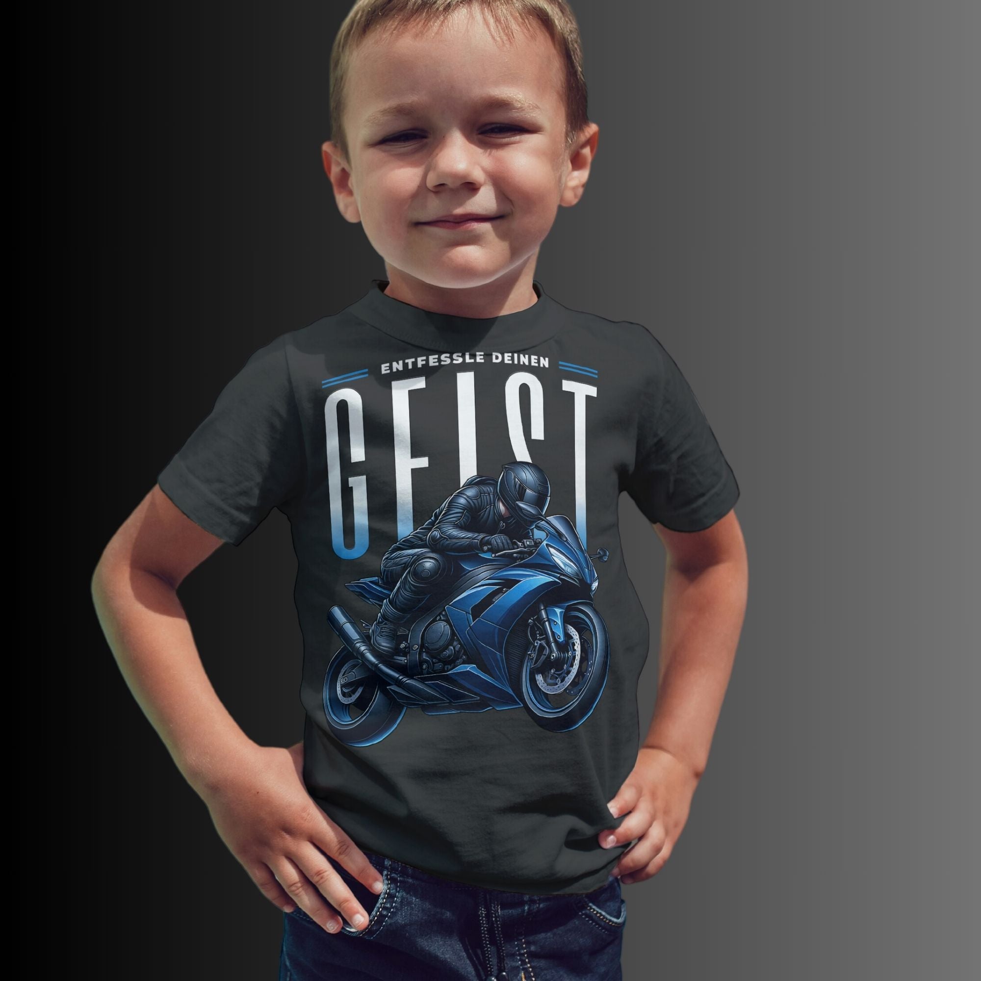 Kinder Motorrad T-Shirt mit blauem Motorrad - Entfessle deinen Geist - Kids Premium Shirt