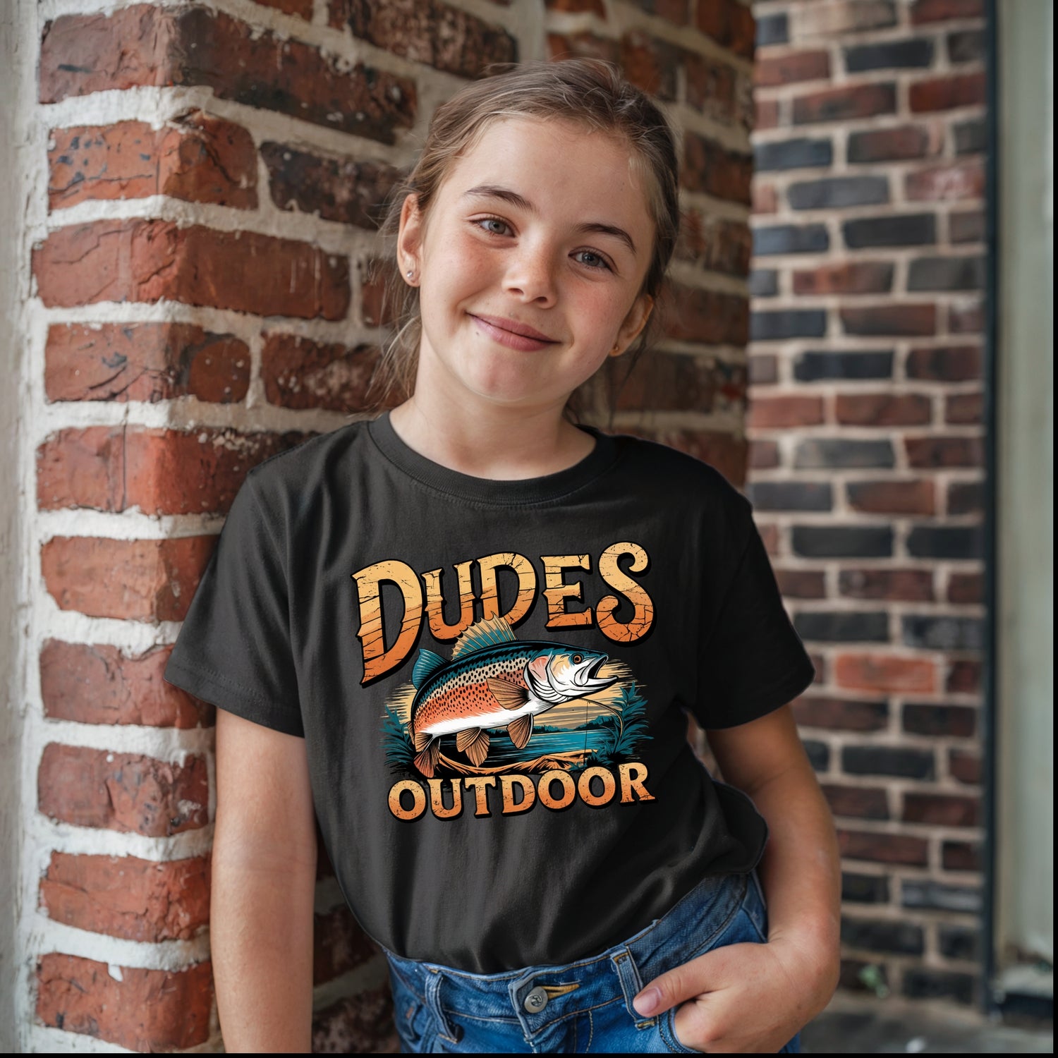 Dudes Outdoor Kinder T-Shirt – Fisch- und Angelruten-Motiv für kleine Angler - Kids Premium Shirt